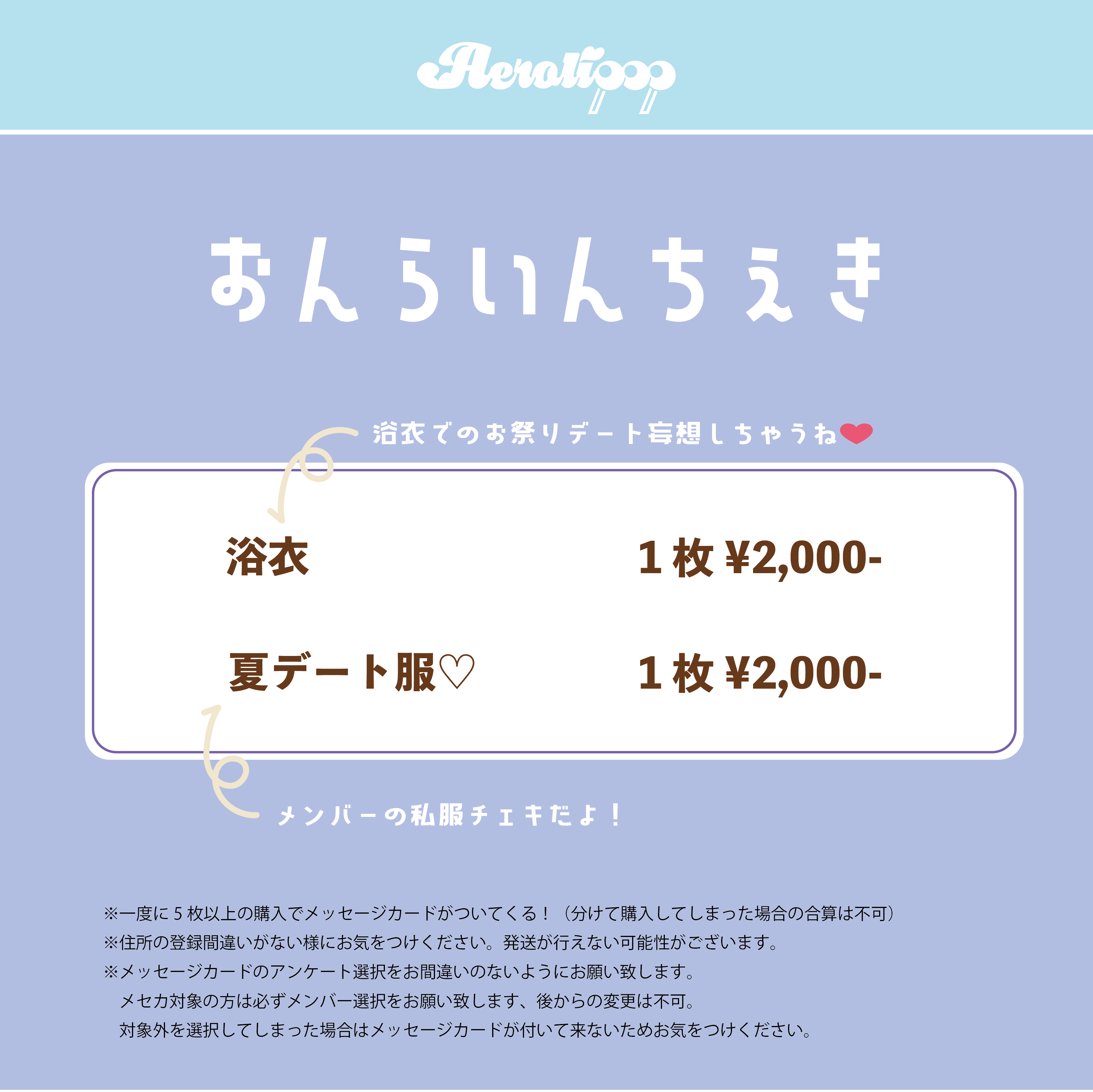 ・"一度のご購入が5枚以上"の方は、推しのメンバーからのメッセージカードを1枚プレゼントさせていただきます。
